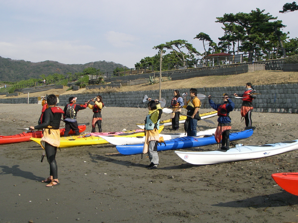冬のシーカヤックツアーの様子。リクエストで三浦半島先端でもツーリングを行なってます。