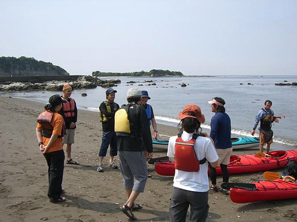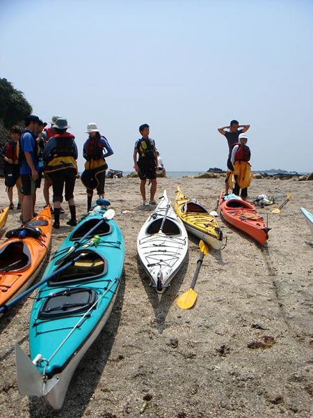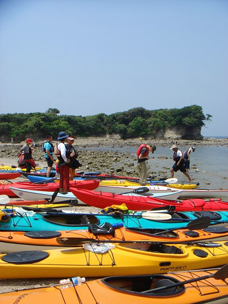 夏のシーカヤックツアーの様子。上陸後、スノーケルや磯散策なども楽しめます。