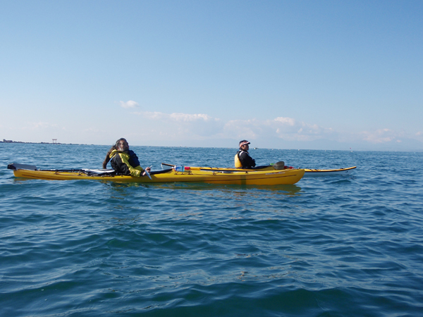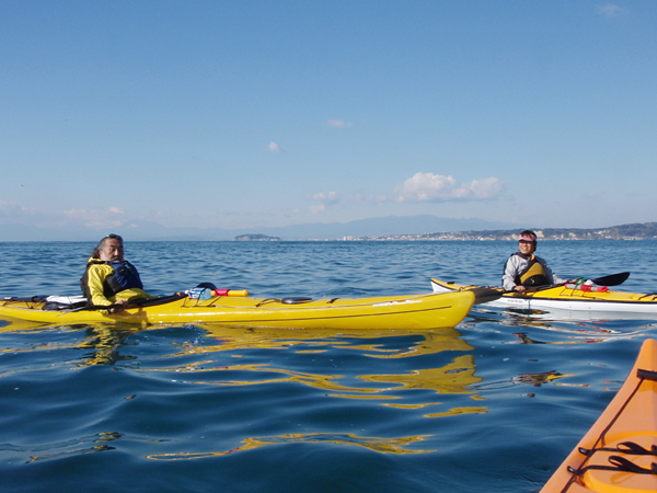 冬のシーカヤックツアーの様子。葉山からでも江ノ島や富士山がバッチリ見えます!