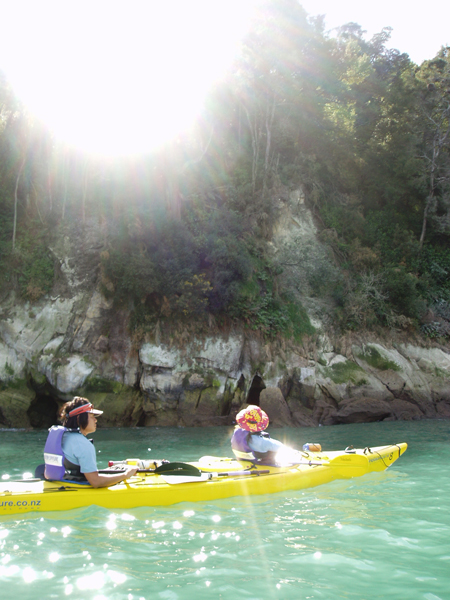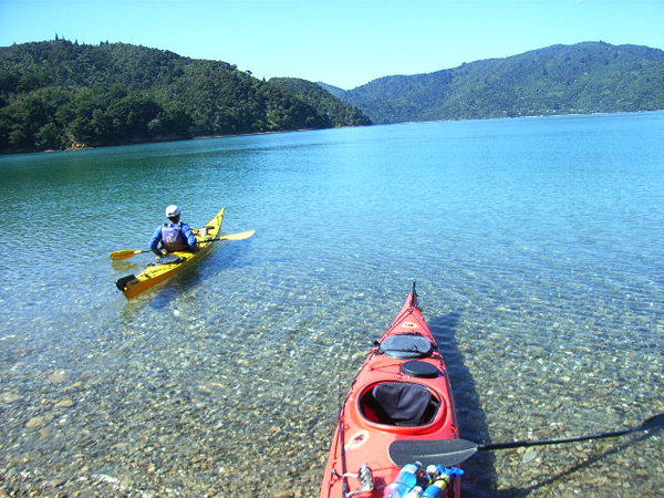 ニュージーランド・マルボロサウンドでのシーカヤックツアーの様子