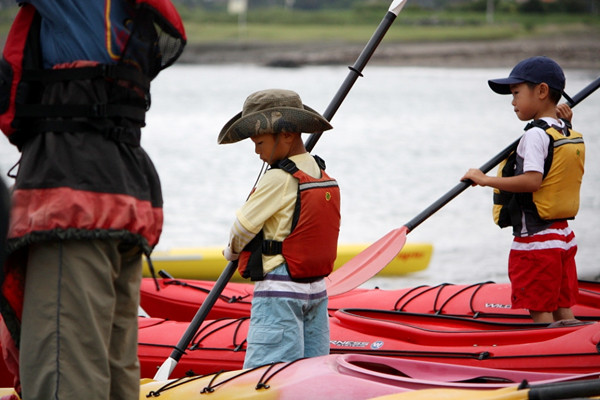 大人も子どもも楽しんでもらうのが「親子シーカヤック体験」の目的です。